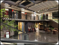 餐后闲逛时发现,五楼的 "江上院子" 别有洞天,青砖白墙配竹影,传统文化与江景在此完美交融。