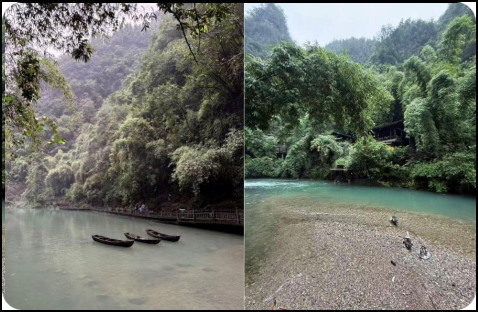下午游览三峡人家,换乘小船进入龙进溪时,土家姑娘的山歌顺着溪水飘来,吊脚楼前的红灯笼在晨雾中若隐若现。