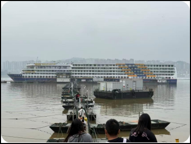 10 月 1 日的宜昌烟雨朦胧,当我站在茅坪港码头眺望江面时,一艘蓝白相间的巨轮正静静等候 —— 这便是 9 月 28 日才首航的美维凯璇号,长江首艘搭载光伏发电系统的豪华游轮。