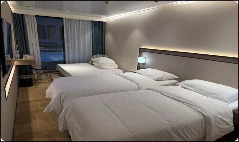选择星际阿波罗游轮的出发点一是船很新2021年下水,二是沙发可以打开作为床铺,解决了三人不用分开两个房间的问题。