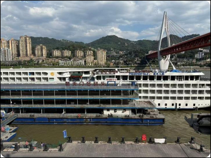 后来在第二天晚上的船长酒会上听杜船长介绍,阿波罗是长江上第六代豪华三峡游轮,采用海上游轮的双船底设计,噪音和平稳度都非常好,基本感受不到发动的噪音。