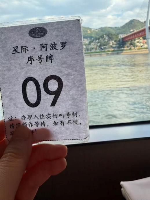 第一天下午16点左右,朝天门码头,先在二楼餐厅处休息,按先后顺序拿号等着分房卡。