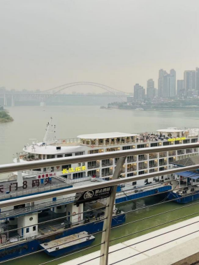 我们乘坐动车到重庆,出行前将车次告知美亚三峡游轮的工作人员,长江探索号就安排好了专车专人接站,下车后即有穿长江探索黄色上衣的工作人员帮忙安排行李,客人可以轻轻松松步行到码头上船,行李直接送到房间。