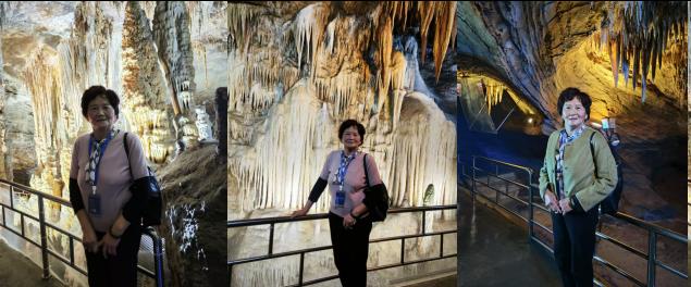 女儿挽着我的手走进狭窄山洞。啊!奇特世界,多神奇,多美妙啊!“洁白如雪”、“质纯似玉”的钟乳石,有的像塔、珊瑚群、石旗王和鹅管王。千姿百态、活灵活现,山洞长1644米。 到了耄耋之年,还能走完这山洞,饱赏美丽的风光,实在不易! 由于我屏住气坚持往前走,又因深知:“坚持就是胜利”,“如果越歇就越想歇”的道理,所以虽然有点累,但我感到挺开心的。 游长江山峡——白帝城