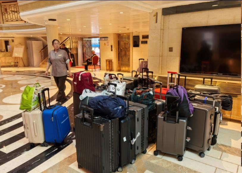 四天三晚的旅程,黄金3号的管家式服务贯穿始终,成为旅途最温暖的底色。每一次登船离船,工作人员整齐列队、笑脸迎送,一句“一路平安”“欢迎下次再来”温暖全程。每一个时间节点,工作人员都提前提醒——从早餐时间到景点游览时长,从游轮启航到离船时间——从未有一丝疏漏。