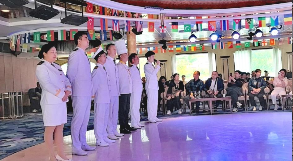 下午,船长欢迎酒会如期举行。黄金3号船长亲自致辞,悠扬的音乐、精致的点心与美酒相伴,大家举杯共祝旅途愉快,彼此陌生的游客很快熟络起来。
