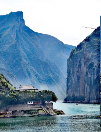 拾级而上,白帝庙庄重古朴,托孤堂内场景再现,让人仿佛看见那段风云激荡的历史。明良殿、武侯祠、东西碑林依次而行,凤凰碑、竹叶碑匠心独具。登上观景台,夔门雄姿尽收眼底,正是10元人民币背后的壮阔图景——两岸绝壁对峙,江水奔腾东流,“夔门天下雄”的震撼扑面而来。我们用镜头记录下这山河胜景,也在诗词与历史之间,读懂了三峡独有的人文风骨。