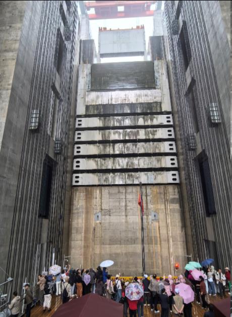 这40多分钟,我们清晰感受船厢平稳下降,视野不断变化,从下游江面到上游平湖,视角逐渐开阔。当承船厢升至与上游水位齐平,上游闸门缓缓打开,游轮顺利驶出,整个过程流畅震撼。这种“坐电梯”过坝方式,让我们真切感受到中国水利工程的顶尖技术与智慧。