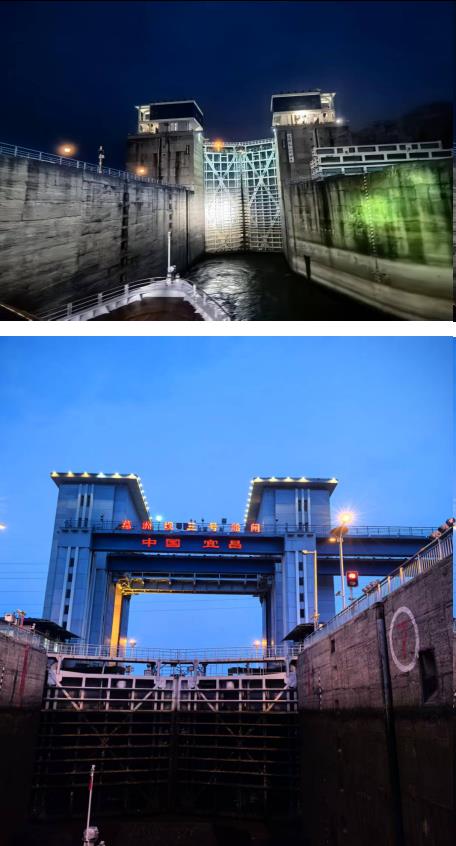 第二天清晨,长江壹号游轮缓缓开动,我们首先体验了葛洲坝船闸,见证了葛洲坝的神奇,看着巨大的闸门缓缓关闭,江水一点点上涨,只几分钟,我们就到了更高的江面,不得不感叹工程的智慧与壮观。