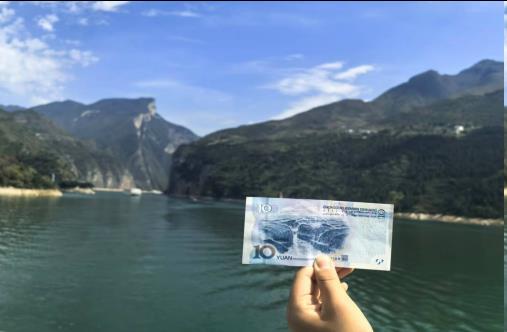 穿过巫峡,便抵达以雄著称的瞿塘峡,这里山势陡峭,江面狭窄,素有“夔门天下雄”的美誉。游轮缓缓驶过夔门,这里正是十元人民币背面的取景地,拿出纸币与眼前实景对比,山河壮阔与经典印记重合,那种亲眼见证钱币中美景的惊喜,难以言表,连忙定格下这难忘的瞬间。