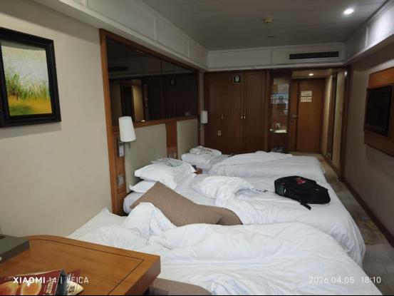 总统7号的阳台标间房间足够大,加床不拥挤,国外回来的亲戚说洗手间比海轮大多了。最赞的是热水,出水量不输五星酒店。