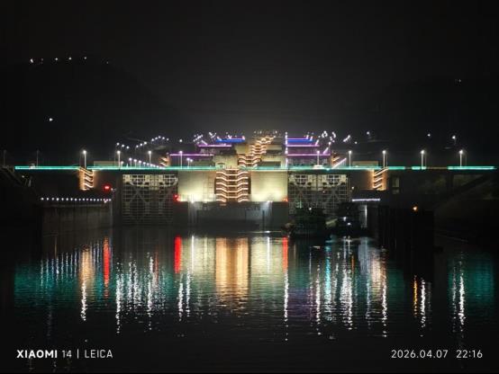 终于见到了三峡大坝五级船闸,夜未央,流光溢彩,真的很美。