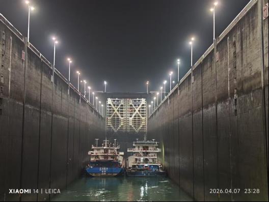 以为我们的总统7号万吨巨轮是按照长江船闸的标准量身定制,然而我们还是低估了大国重器的恢弘。在我们前面,两艘干散货船起头并进,就像手拉手的twins,与船闸严丝合缝先行驶入。
