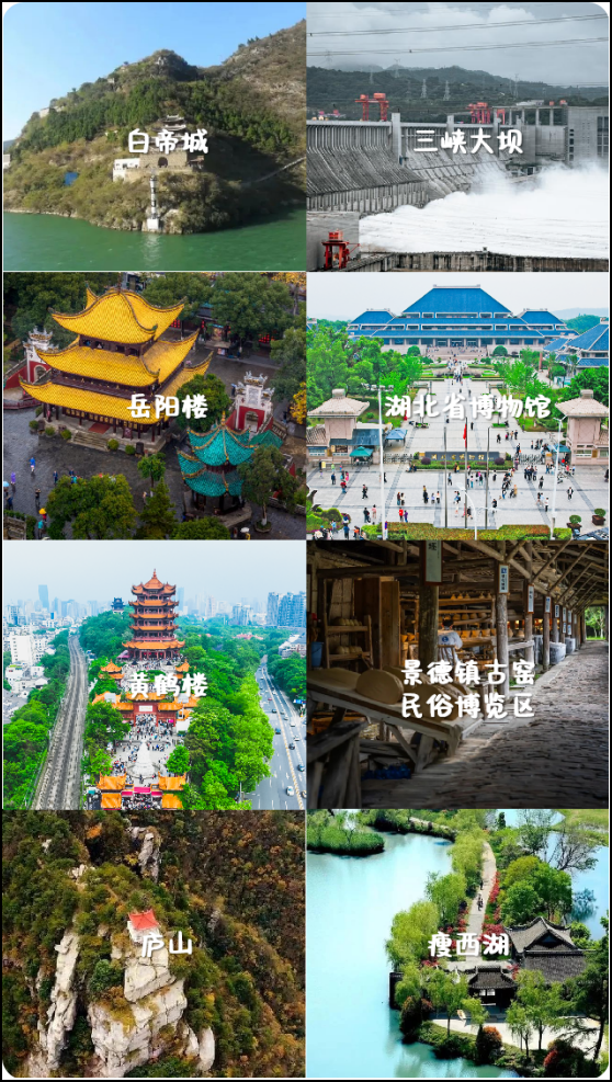慢游中国八大5A级景区:瘦西湖、庐山、景德镇、黄鹤楼、湖北省博物馆、岳阳楼、三峡大坝、白帝城巡游中国最美峡谷长江三峡:西陵峡、巫峡、瞿塘峡