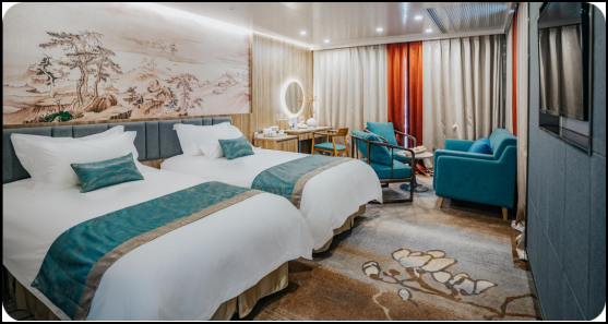 除了阳台标准间之外,美亚三峡游轮官网长江壹号其他所有在售房型均享受“2大免1小”优惠,即12岁以下小孩不占床免费。
