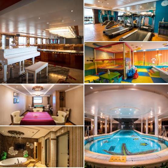 游轮上有Spa与室内恒温泳池,行政房与总统套房客人有专属的行政酒廊