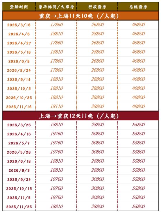今天,为大家带来重庆到上海游轮旅游价格一览表,助您提前规划2026年豪华游轮之旅。
