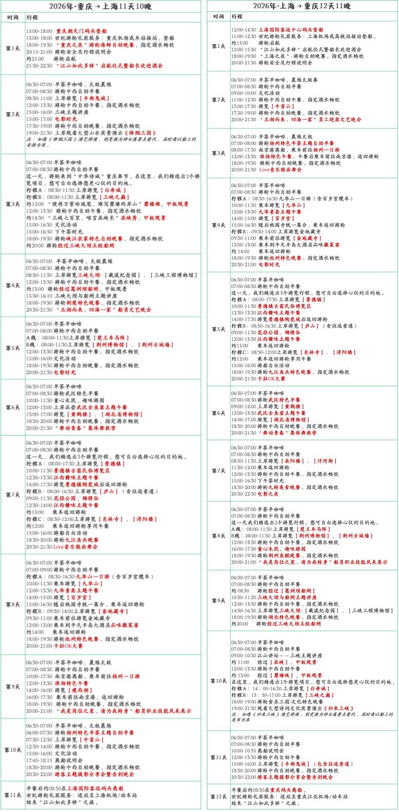价格包含:登离船当天接送服务、全程服务、全程食宿、景点门票、导游讲解、码头与景点用车、船上文娱活动。