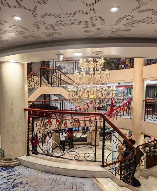 看,下面一张图就是华夏二号的大厅了,像五星级酒店一样的办理入住,因为小朋友早上起床难,怕早饭紧张,于是升了餐,也顺便升了联通房,正好我们一家四口,像套间一样。哦也!
