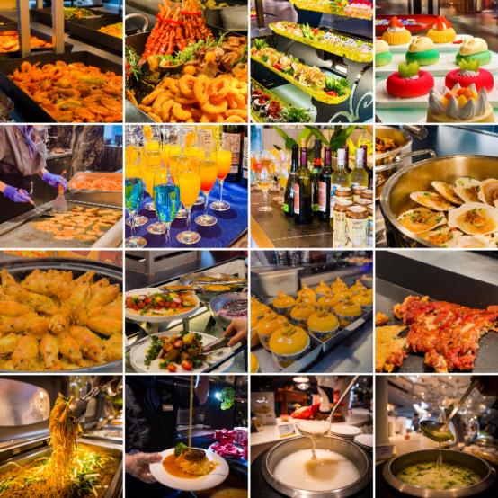 早餐有现做的面档、烘焙,正餐有现切刺身、现煎牛排,酒水软饮畅饮。食材高端(如进口牛排、鲜活河/海鲜),厨师现场烹饪。还有游轮或景区下午茶,配着美景,仪式感十足。