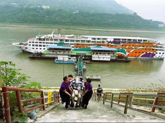 三峡游轮长江奇迹码头轮椅搬抬