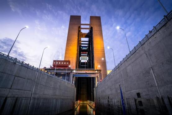 三峡大坝升船机,简单说就是一座给轮船坐的超级电梯。它的承船箱能把连同游轮+游客+水在内的一万多吨载重,一口气提升113米,相当于40层楼高。是世界规模最大、技术难度最高的升船机工程。